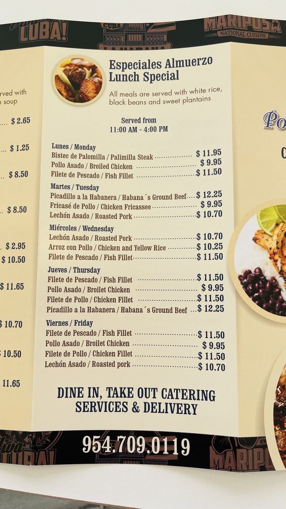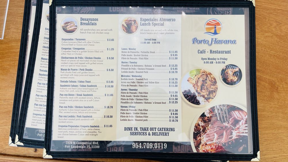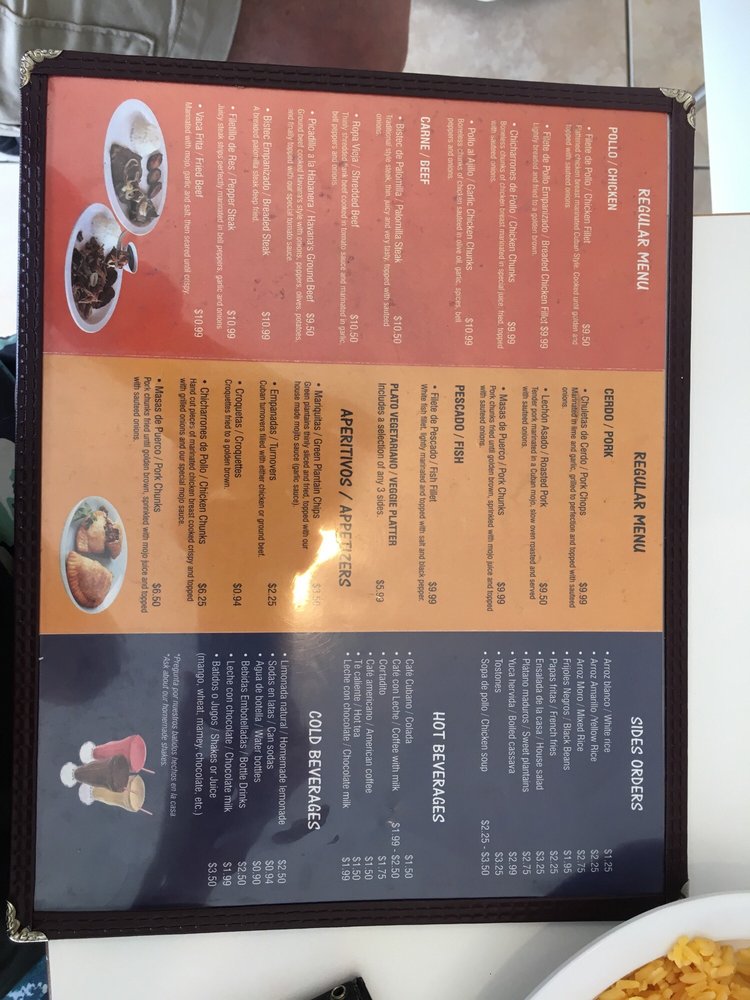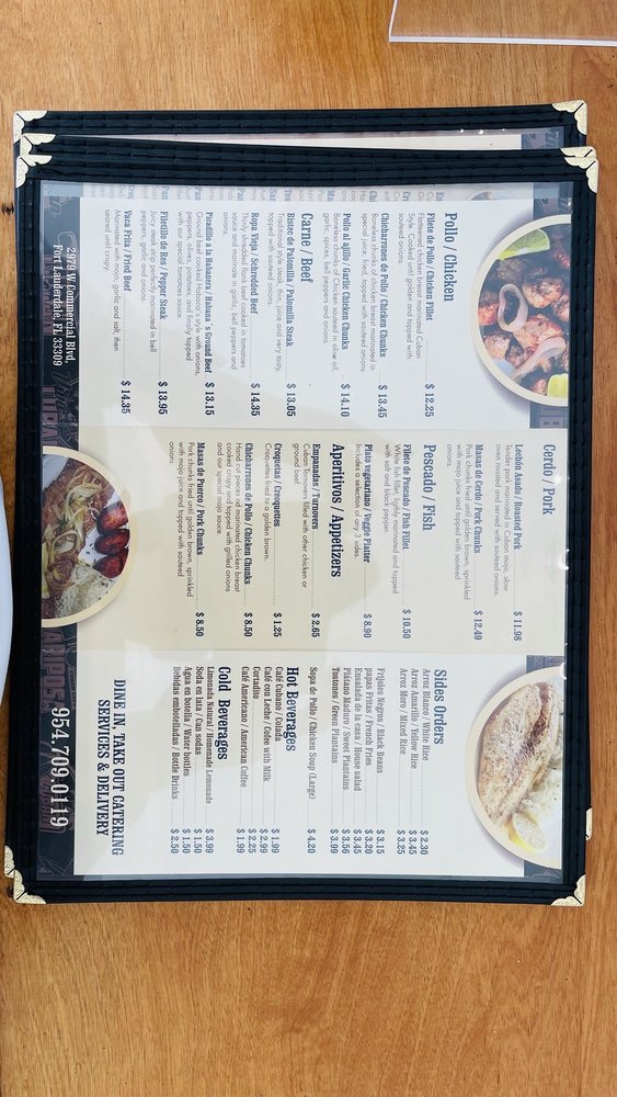The menu shines with highlights like the Pan con Bistec, featuring tender Palomilla steak smothered in sautéed onions, and the classic Cubano Sandwich, layered with ham, pork, and Swiss cheese on fresh Cuban bread. Each dish is a testament to rich tradition, evident in customer reviews praising the well-seasoned fare and friendly service.